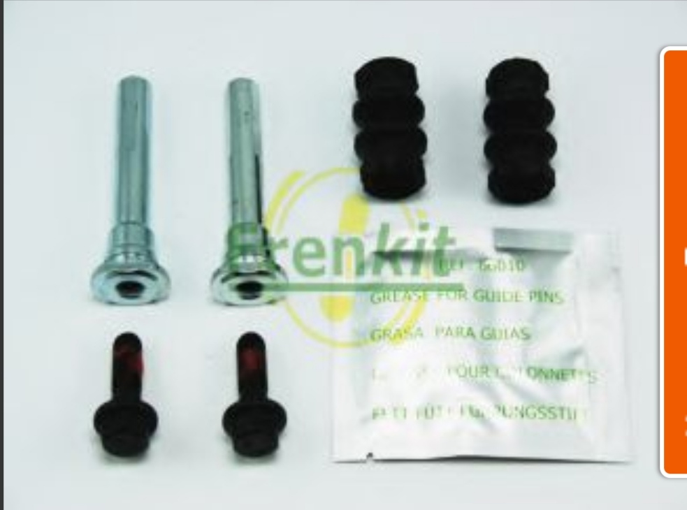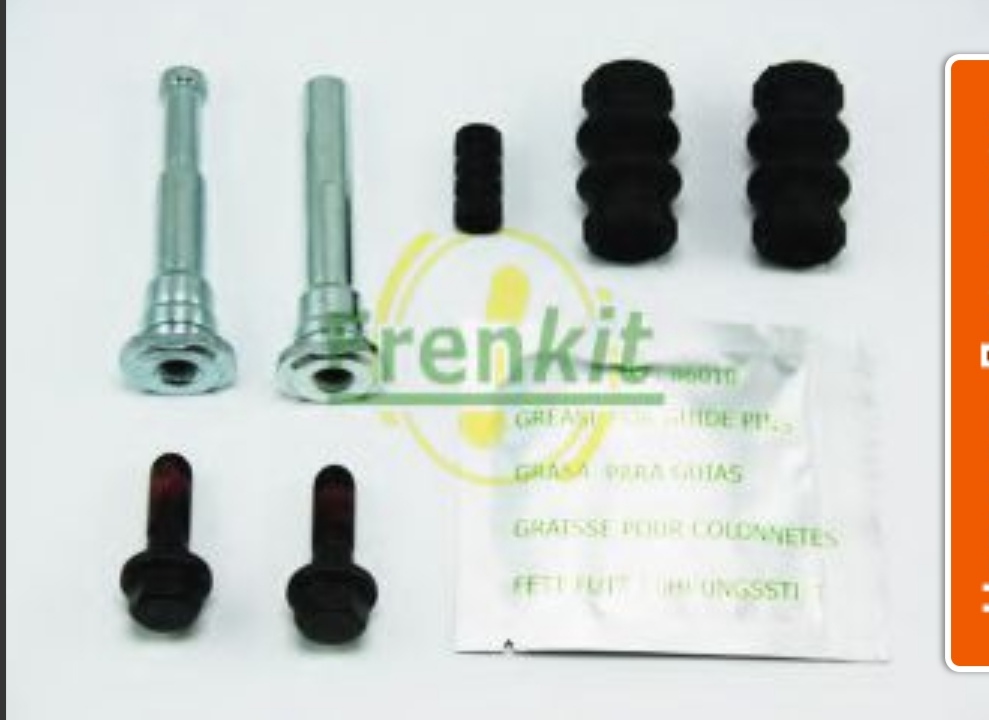 Пару слов о ремкомлектах направляющих суппортов от Frenkit с каталожными номерами 810006 и 810007. По диаметру становятся идеально, не в притирку и без люфта, конечно учитывая состояние скобы. В комплект входит все, что есть на картинках выше. Но... Куда же без но) шляпка направляющих немного меньше оригинала и при затягивании болта проворачивается и не заходит в зацеп с упором, расположенным на суппорте. Зажимать пришлось путем подкладывания плоской отвёртки, создавая упор.