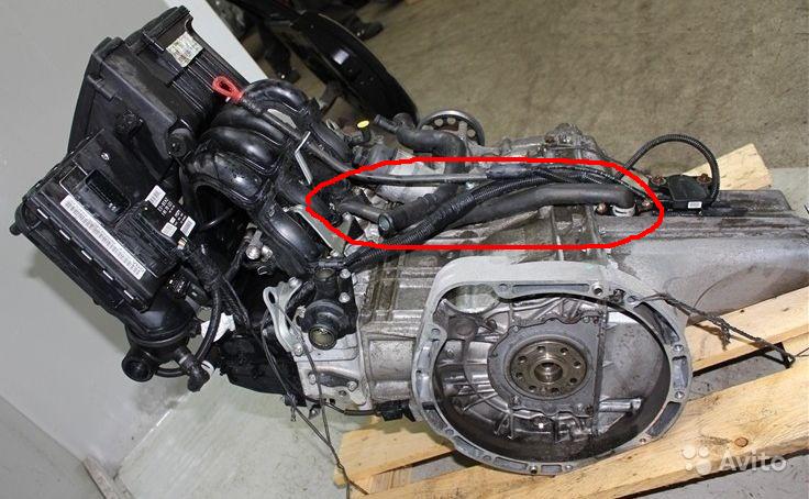 За коллектором есть резиновая трубка, она идет с картера.